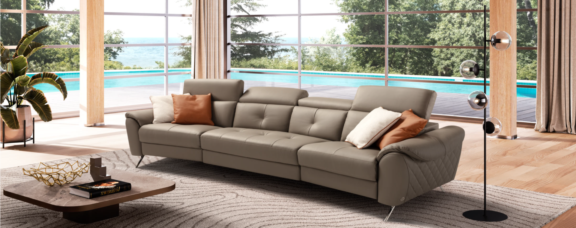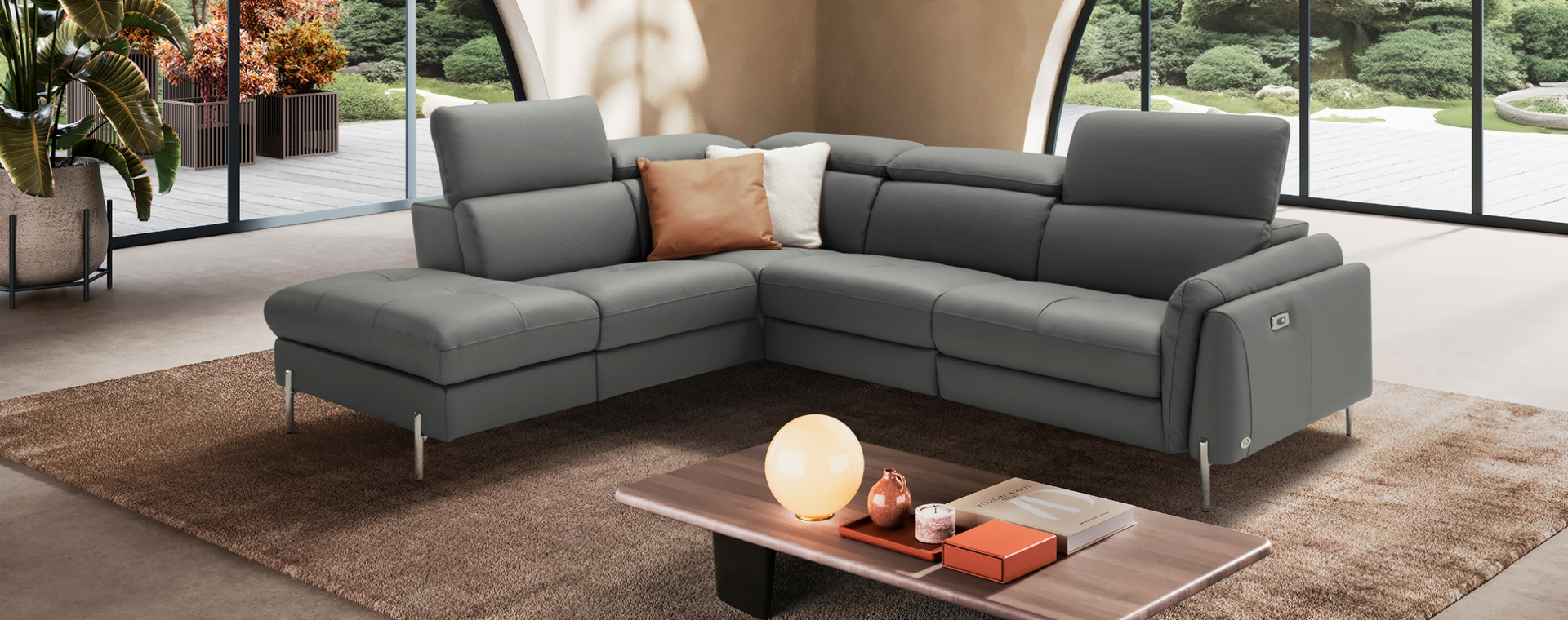 Yianni 四座全真皮電動功能右貴妃儲物梳化